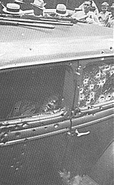 Everyone fires, the BARs with spew out twenty shots in an instant, and the bullets hitting the car sounded like a drum roll. When the firing quit, Clyde was slumped forward , the back of his head a mat of blood. Bonnie was hanging out of the opened car door.
