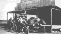 Lucille (Milam) Daut has pictures of the family car (an open top model T) parked in front of the post office. It was used to carry the mail bags on the one mile trip from the depot to the post office. One picture (taken near Christmas) shows mail bags stacked about six feet high in the rear seat, stacked on both running boards, on the front fenders, in the front passenger seat and on top of the hood. That was the second load. Lucille stated that during the holiday seasons around Thanksgiving and Christmas the mail sometime ran 100 bags per day. Of course most of the bags held packages, presents for the holidays and goods ordered from mail-order sources, rather than letters. .